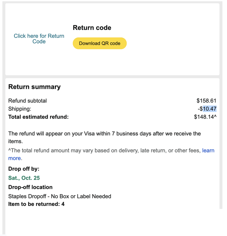 So simply tell them to return the money to your bank. I hope you won’t be charged for returns as a prime membership owner, and also not refund for LESS than what you paid.